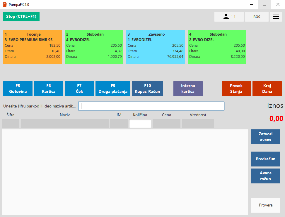 Pokreni monitor je glavni meni preko koga operater prati tocenja i vrši naplatu.