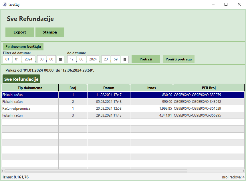 Svi izveštaji koje poseduje sistem mogu se štampati ili
